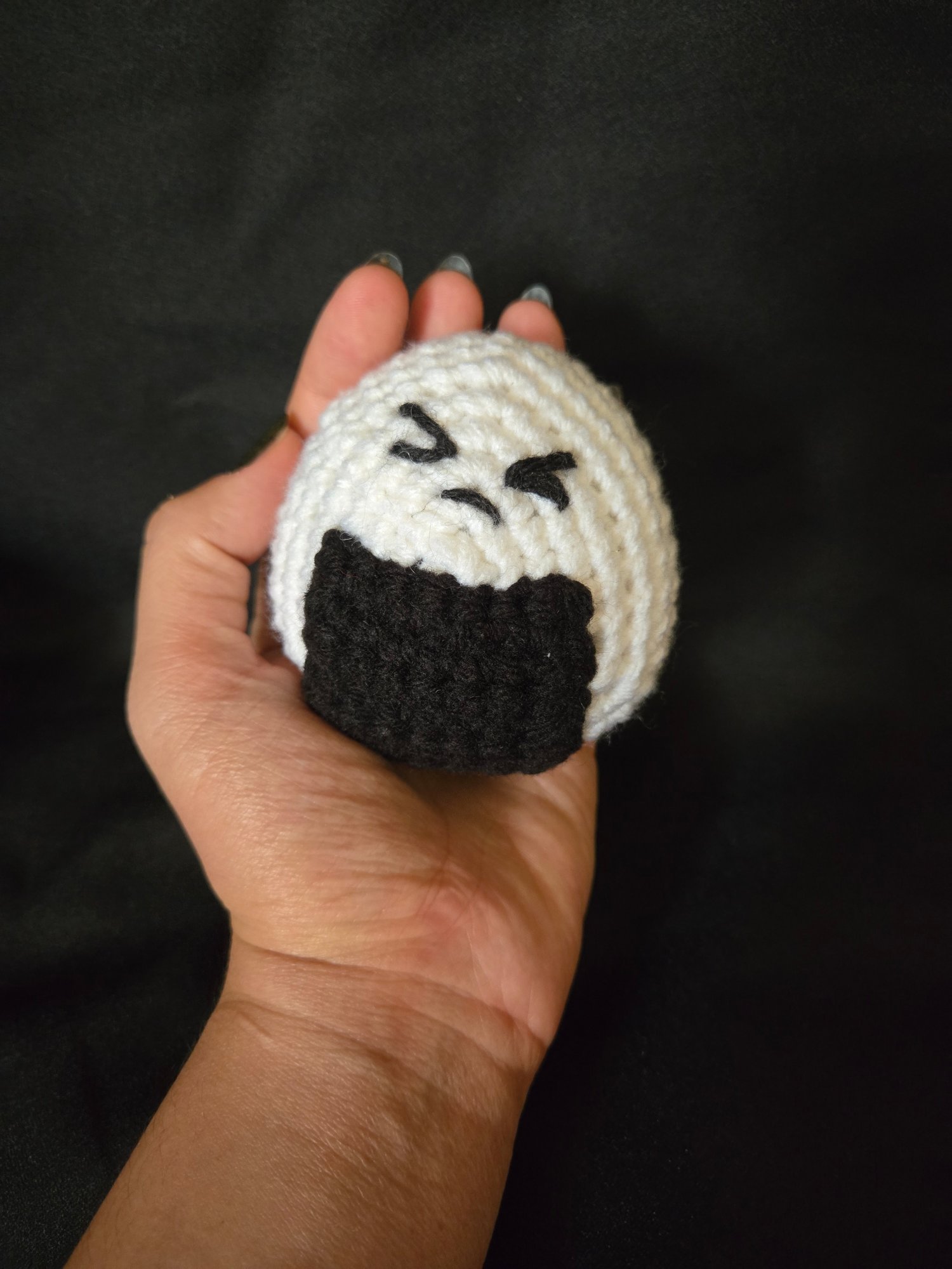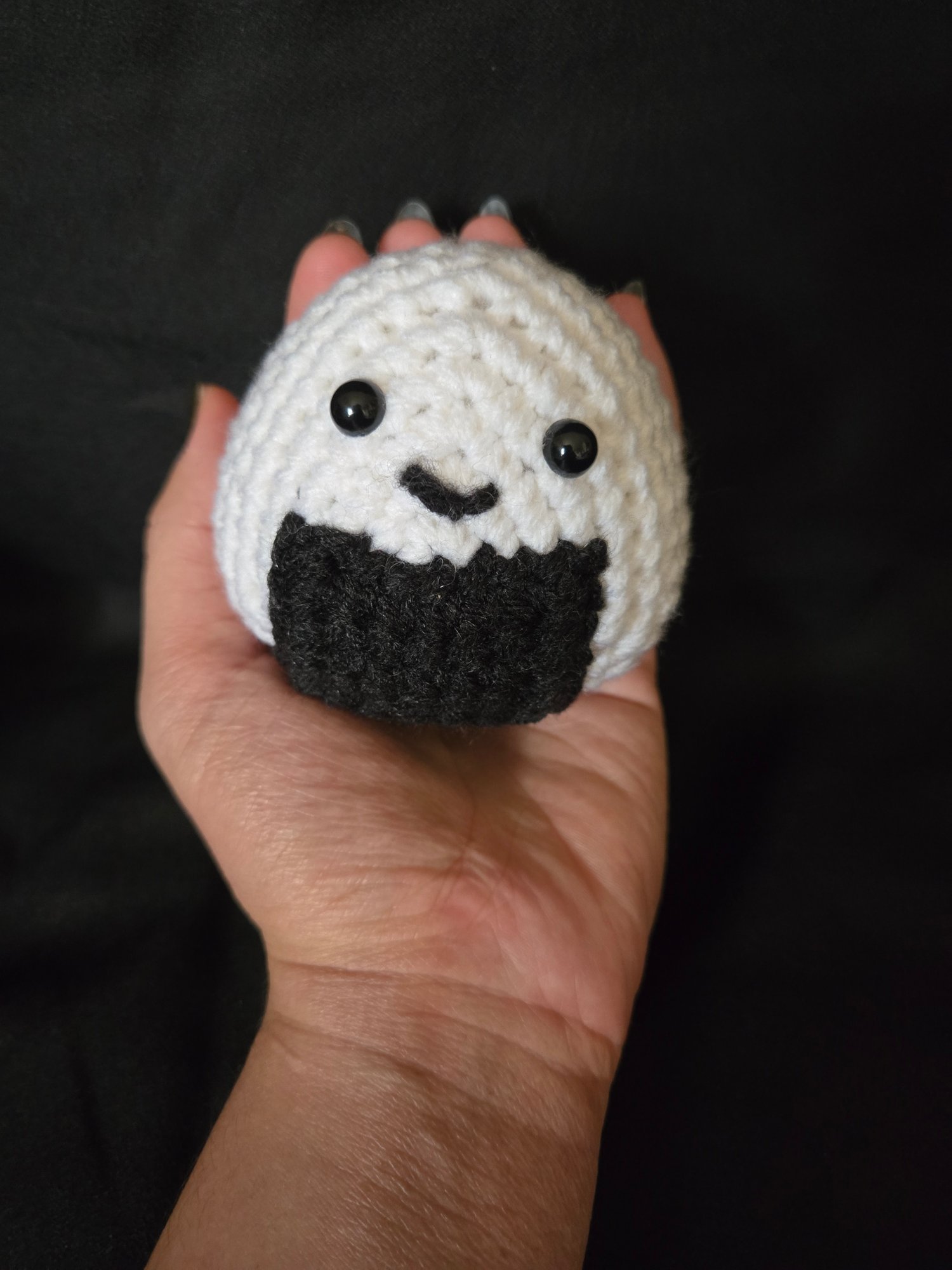 All crocheted elements of the riceball were made with worsted weight acrylic yarn and filled with fiber fill stuffing.
